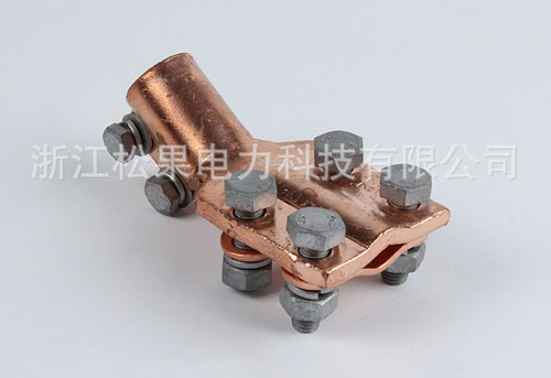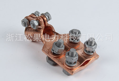 線夾主要用于變電所母線引下線與電氣設(shè)備(如變壓器,斷路器,隔離開(kāi)關(guān),穿墻套管等)的出線端子連接,按下線與安裝電氣設(shè)備端子所成角的不同分為0°、30°、90°三種。本線夾采用螺套加側(cè)開(kāi)縫設(shè)計(jì),線夾安裝在設(shè)備導(dǎo)桿上后,再擰緊開(kāi)縫緊固螺栓,具有電氣接觸面積大,接觸緊密牢固等優(yōu)點(diǎn)。