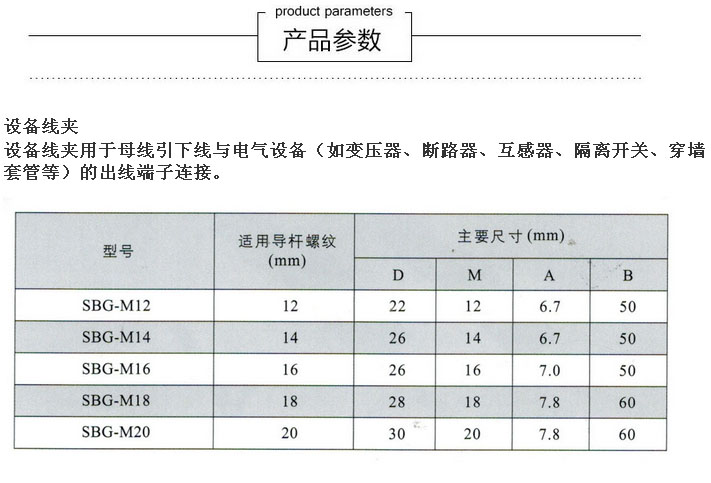 SBG-M12 變壓器平板線夾